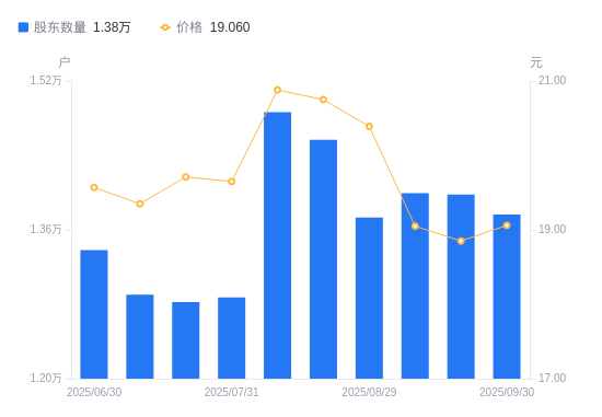 近一年(2024年9月30日至2025年9月30日),鸥玛软件A股股东户数从1.66万户,减低至1.38万户,降幅17.32%,区间股价上涨12.18%。