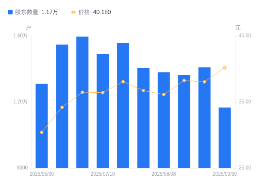 近一年(2024年9月30日至2025年9月30日),凯旺科技A股股东户数从1.16万户,增加至1.17万户,增幅0.87%,区间股价上涨82.55%。