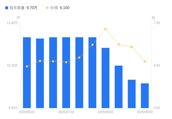 近一年(2024年9月30日至2025年9月30日),黑芝麻A股股东户数从9.26万户,增加至9.7万户,增幅4.73%,区间股价上涨49.88%。