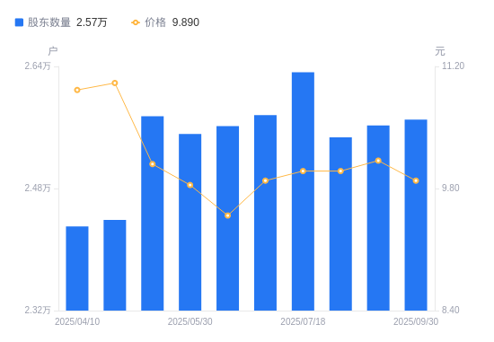 近一年(2024年9月30日至2025年9月30日),广日股份A股股东户数从2.27万户,增加至2.57万户,增幅13.35%,区间股价下跌7.01%。