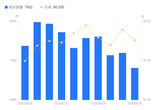 近一年(2024年9月30日至2025年9月30日),美信科技A股股东户数从7764户,减低至7452户,降幅4.02%,区间股价上涨17.67%。