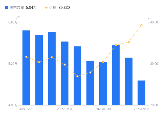 近一年(2024年9月30日至2025年9月30日),融捷股份A股股东户数从6.32万户,减低至5.04万户,降幅20.21%,区间股价上涨14.75%。