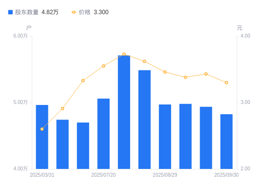 近一年(2024年9月30日至2025年9月30日),重庆建工A股股东户数从4.08万户,增加至4.82万户,增幅18.32%,区间股价上涨31.47%。