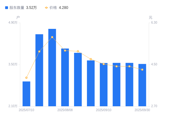 近一年(2024年9月20日至2025年9月20日),莱美药业A股股东户数从3.34万户,增加至3.55万户,增幅6.35%,区间股价上涨55.63%。