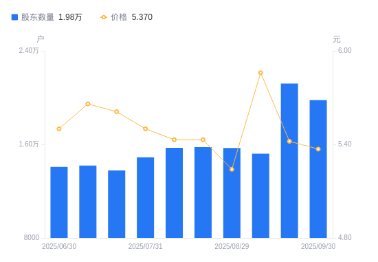 近一年(2024年9月30日至2025年9月30日),罗普斯金A股股东户数从1.54万户,增加至1.98万户,增幅28.15%,区间股价上涨0.19%。