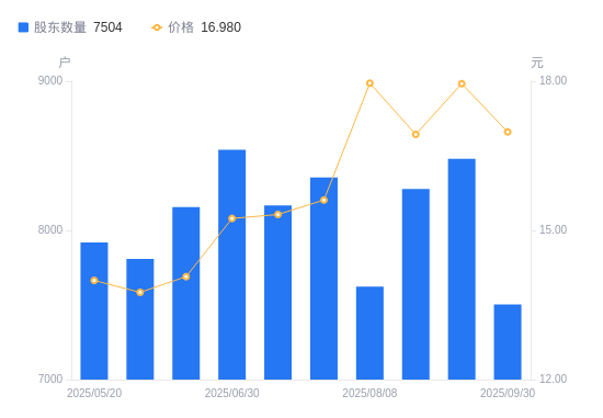 近一年(2024年9月30日至2025年9月30日),名雕股份A股股东户数从8142户,减低至7504户,降幅7.84%,区间股价上涨60.89%。
