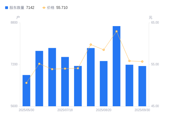 近一年(2024年9月30日至2025年9月30日),盛帮股份A股股东户数从7112户,增加至7142户,增幅0.42%,区间股价上涨54.19%。
