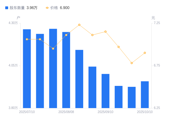 近一年(2024年9月30日至2025年9月30日),四川美丰A股股东户数从4.81万户,减低至3.93万户,降幅18.42%,区间股价下跌1.02%。