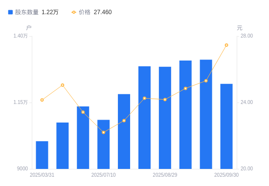 近一年(2024年9月30日至2025年9月30日),祥源新材A股股东户数从7228户,增加至1.22万户,增幅68.86%,区间股价上涨85.24%。
