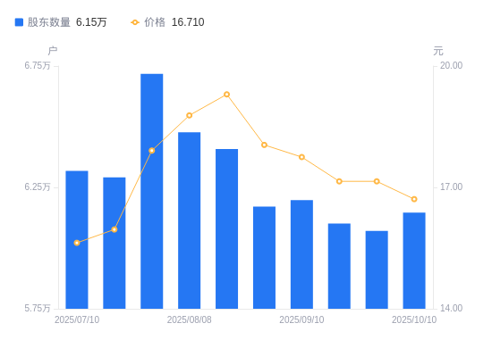 近一年(2024年10月10日至2025年10月10日),欧普康视A股股东户数从6.82万户,减低至6.15万户,降幅9.91%,区间股价下跌17.18%。