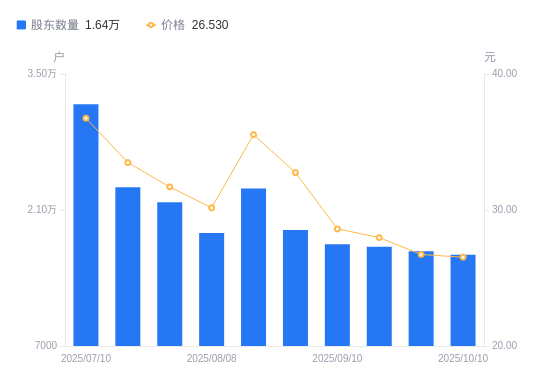 近一年(2024年10月31日至2025年10月10日),逸豪新材A股股东户数从1.35万户,增加至1.64万户,增幅21.22%,区间股价上涨42.33%。