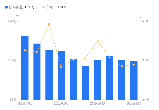 10月13日消息,数据显示,截至2025年9月30日,共创草坪A股股东总户数为1.62万户,较上期(2025年9月19日)减少808户,降幅4.76%。公司最新A股总股本为4.03亿股,其中流通A股4.01亿股,户均持有流通A股数量为2.48万股,较上期增加1209.29股,增幅5.12%;户均持流通A股市值76.71万元,较上期减少4432.34元,降幅0.57%。