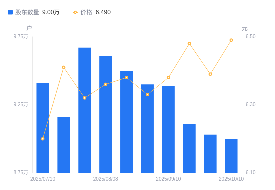 近一年(2024年10月10日至2025年10月10日),罗牛山A股股东户数从9.81万户,减低至9万户,降幅8.26%,区间股价上涨19.30%。