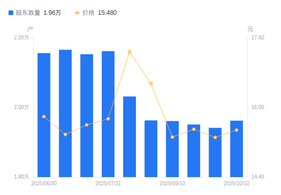 近一年(2024年10月10日至2025年10月10日),必创科技A股股东户数从1.59万户,增加至1.96万户,增幅23.45%,区间股价下跌15.41%。