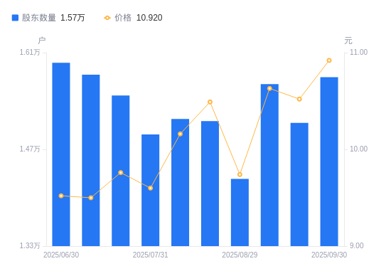 近一年(2024年9月30日至2025年9月30日),泰瑞机器A股股东户数从1.81万户,减低至1.57万户,降幅12.90%,区间股价上涨41.27%。