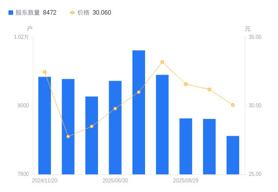 近一年(2024年11月20日至2025年10月10日),骏成科技A股股东户数从9508户,减低至8472户,降幅10.90%,区间股价下跌7.62%。