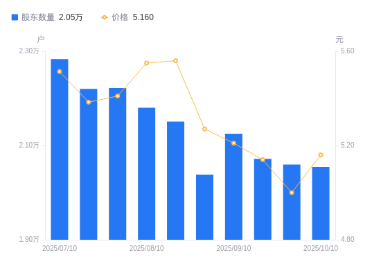 近一年(2024年10月10日至2025年10月10日),中建环能A股股东户数从2.2万户,减低至2.05万户,降幅6.42%,区间股价上涨12.32%。