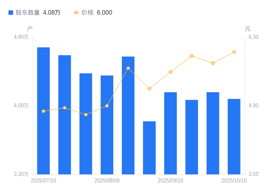 近一年(2024年10月10日至2025年10月10日),宝莫股份A股股东户数从3.94万户,增加至4.08万户,增幅3.48%,区间股价上涨55.44%。