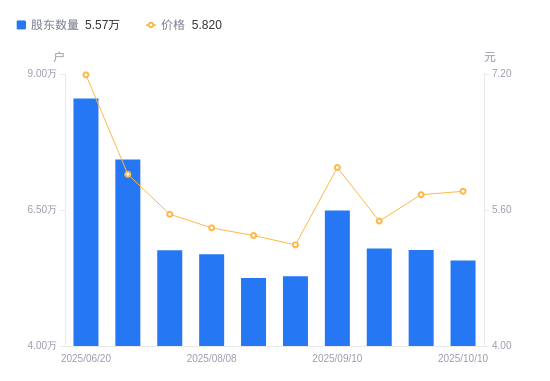 近一年(2024年10月10日至2025年10月10日),通源石油A股股东户数从4.03万户,增加至5.57万户,增幅38.35%,区间股价上涨32.57%。