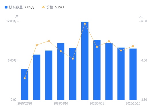 近一年(2024年10月10日至2025年10月10日),韶能股份A股股东户数从4.94万户,增加至7.85万户,增幅58.68%,区间股价上涨39.62%。