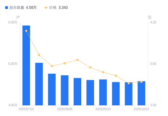 近一年(2024年10月10日至2025年10月10日),新能泰山A股股东户数从4.53万户,增加至4.58万户,增幅1.21%,区间股价上涨10.60%。