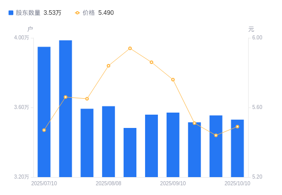 近一年(2024年10月10日至2025年10月10日),天虹股份A股股东户数从3.64万户,减低至3.53万户,降幅3.08%,区间股价上涨17.81%。