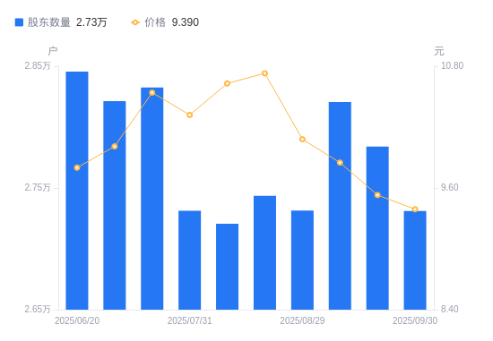 近一年(2024年10月10日至2025年10月10日),克明食品A股股东户数从3.15万户,减低至2.74万户,降幅13.26%,区间股价上涨8.49%。