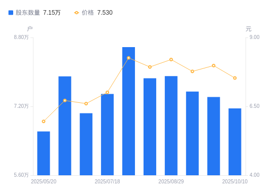 近一年(2024年10月10日至2025年10月10日),远望谷A股股东户数从6.84万户,增加至7.15万户,增幅4.61%,区间股价上涨58.03%。