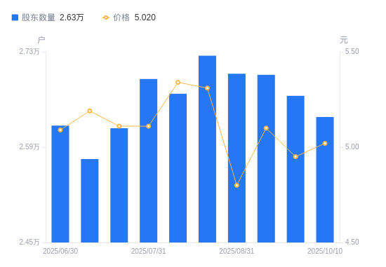近一年(2024年10月10日至2025年10月10日),华斯股份A股股东户数从2.89万户,减低至2.63万户,降幅8.99%,区间股价上涨45.93%。