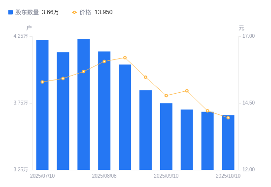 近一年(2024年10月10日至2025年10月10日),朗玛信息A股股东户数从4.08万户,减低至3.66万户,降幅10.23%,区间股价下跌2.21%。