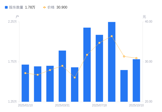 近一年(2024年10月10日至2025年10月10日),拓新药业A股股东户数从1.97万户,减低至1.78万户,降幅9.64%,区间股价下跌8.82%。