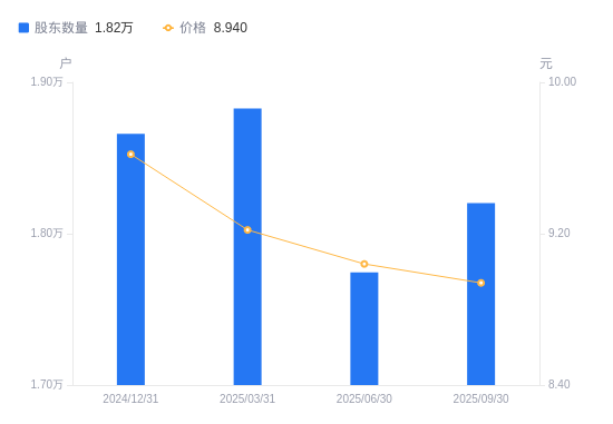 近一年(2024年9月30日至2025年9月30日),齐峰新材A股股东户数从1.88万户,减低至1.82万户,降幅3.07%,区间股价下跌15.50%。