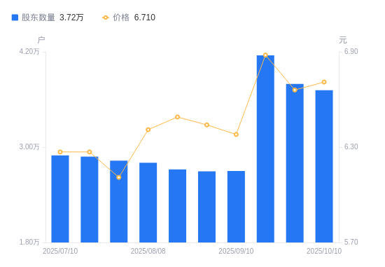 近一年(2024年10月18日至2025年10月10日),中汽股份A股股东户数从3.4万户,增加至3.72万户,增幅9.23%,区间股价上涨12.72%。