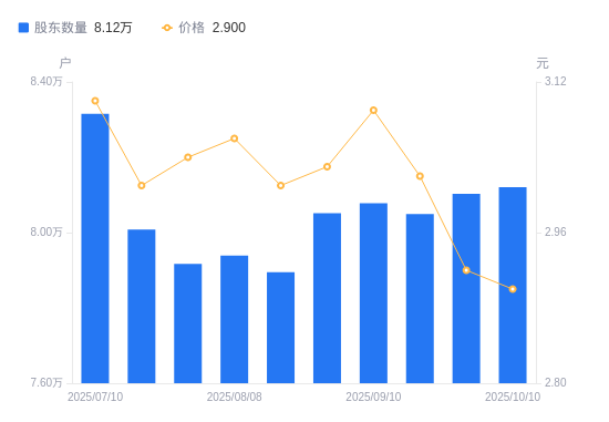 近一年(2024年10月10日至2025年10月10日),天邦食品A股股东户数从8.04万户,增加至8.12万户,增幅1.06%,区间股价上涨27.75%。