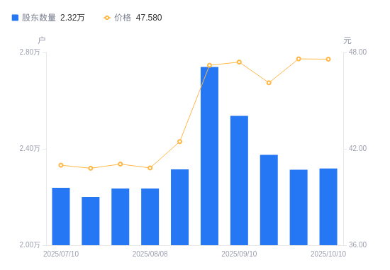近一年(2024年10月10日至2025年10月10日),新媒股份A股股东户数从2.13万户,增加至2.32万户,增幅8.90%,区间股价上涨23.48%。