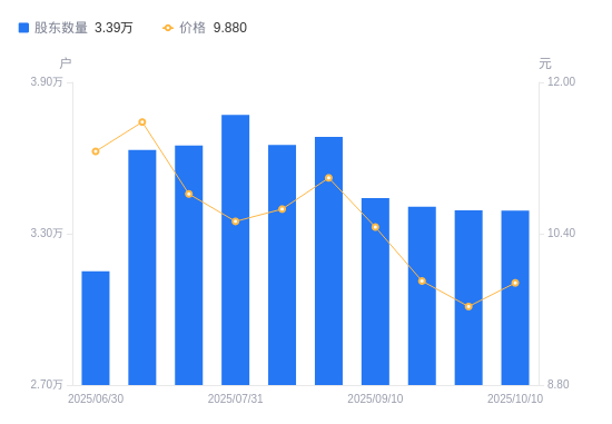 近一年(2024年10月18日至2025年10月10日),保龄宝A股股东户数从3.36万户,增加至3.39万户,增幅0.96%,区间股价上涨47.13%。