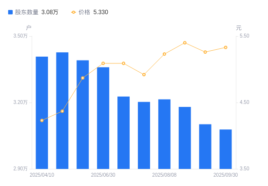 近一年(2024年9月20日至2025年9月10日),德联集团A股股东户数从3.48万户,减低至3.18万户,降幅8.70%,区间股价上涨52.11%。