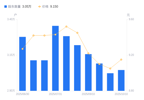 近一年(2024年10月10日至2025年10月10日),甘咨询A股股东户数从2.92万户,增加至3.05万户,增幅4.44%,区间股价上涨15.97%。