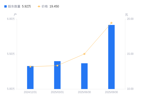 近一年(2024年9月30日至2025年9月30日),九洲药业A股股东户数从4.84万户,增加至5.92万户,增幅22.16%,区间股价上涨39.27%。