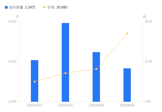 近一年(2024年9月30日至2025年9月30日),信质集团A股股东户数从2.05万户,增加至2.34万户,增幅13.84%,区间股价上涨142.20%。