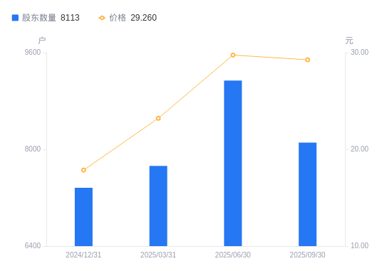 近一年(2024年9月30日至2025年9月30日),瑜欣电子A股股东户数从7557户,增加至8113户,增幅7.36%,区间股价上涨78.77%。