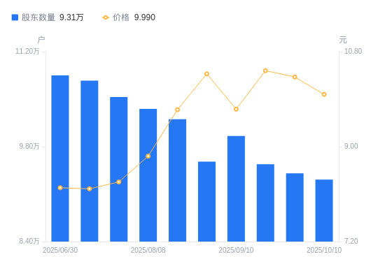 近一年(2024年9月30日至2025年9月30日),创世纪A股股东户数从7.59万户,增加至9.41万户,增幅23.98%,区间股价上涨61.00%。