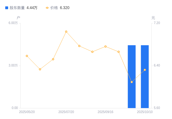 近一年(2024年10月10日至2025年10月10日),京粮控股A股股东户数从4.99万户,减低至4.44万户,降幅11.02%,区间股价上涨3.23%。