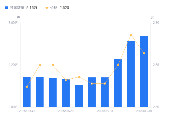 近一年(2024年9月30日至2025年9月30日),中南文化A股股东户数从4.63万户,增加至5.16万户,增幅11.42%,区间股价上涨35.75%。