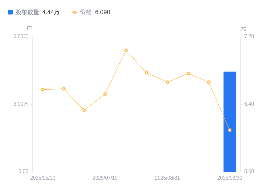 近一年(2024年10月10日至2025年9月30日),京粮控股A股股东户数从4.99万户,减低至4.44万户,降幅11.02%,区间股价下跌0.52%。