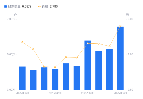 近一年(2024年9月30日至2025年9月19日),ST美晨A股股东户数从3.7万户,增加至6.96万户,增幅88.04%,区间股价上涨110.06%。