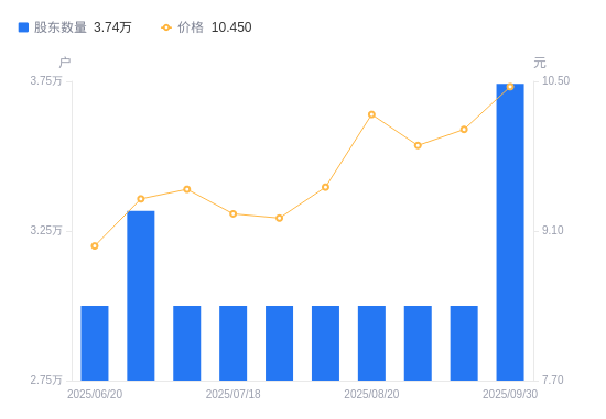 近一年(2024年9月30日至2025年9月30日),茂硕电源A股股东户数从3.33万户,增加至3.74万户,增幅12.36%,区间股价上涨35.54%。