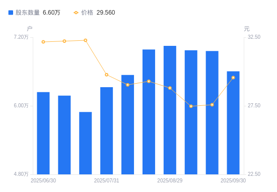 近一年(2024年9月30日至2025年9月30日),新大陆A股股东户数从6.02万户,增加至6.6万户,增幅9.75%,区间股价上涨95.61%。