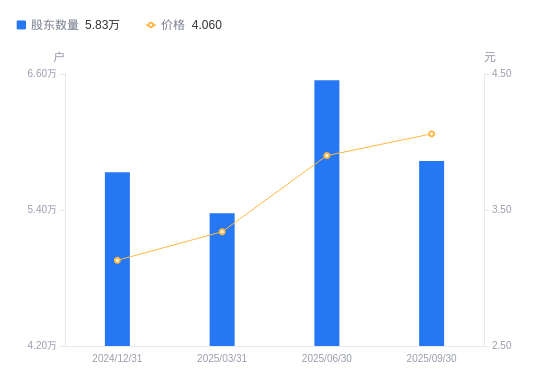 近一年(2024年9月30日至2025年9月30日),澳洋健康A股股东户数从5.66万户,增加至5.83万户,增幅3.03%,区间股价上涨47.64%。