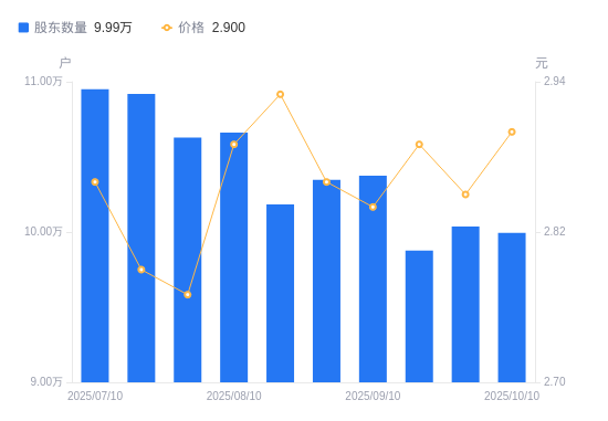 近一年(2024年10月10日至2025年10月10日),神州高铁A股股东户数从9.52万户,增加至9.99万户,增幅5.01%,区间股价上涨27.19%。